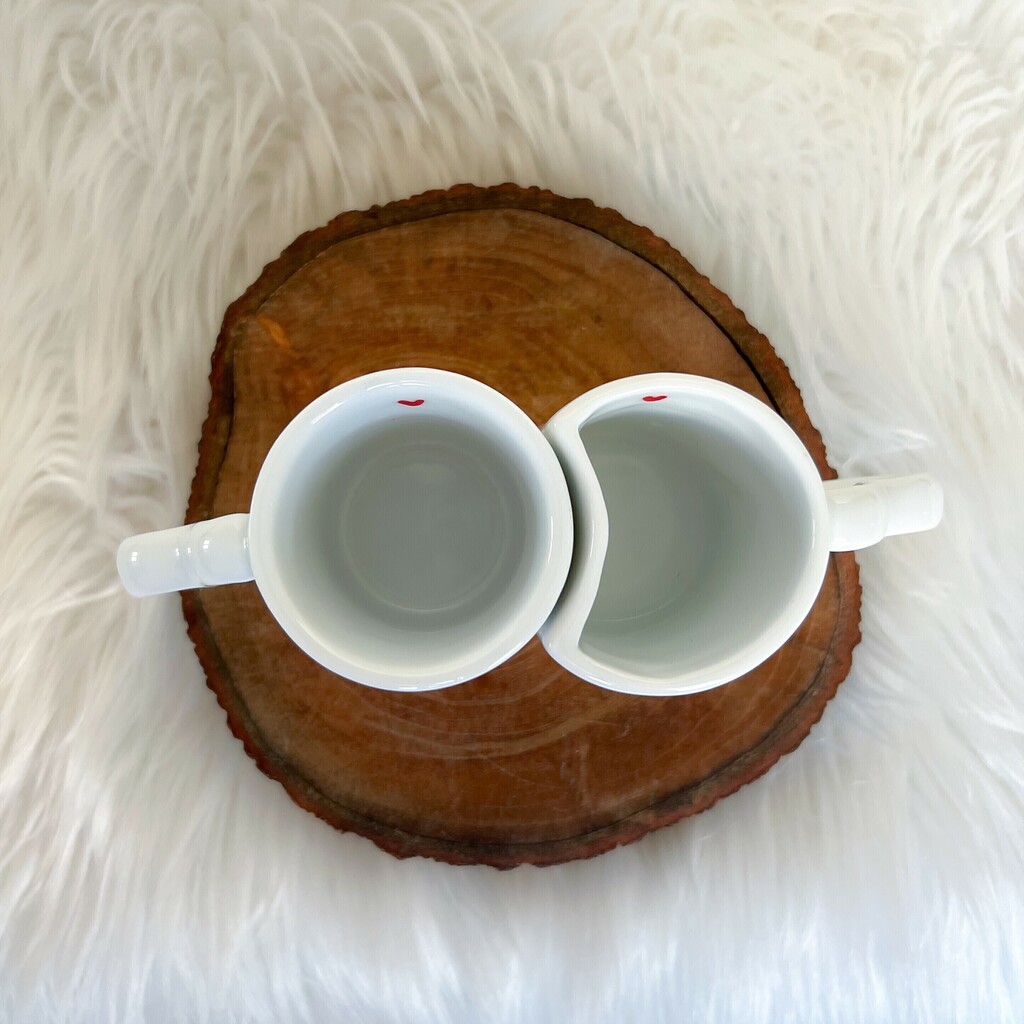 Canecas 120ml, em porcelana branca com alça em formato de coração.